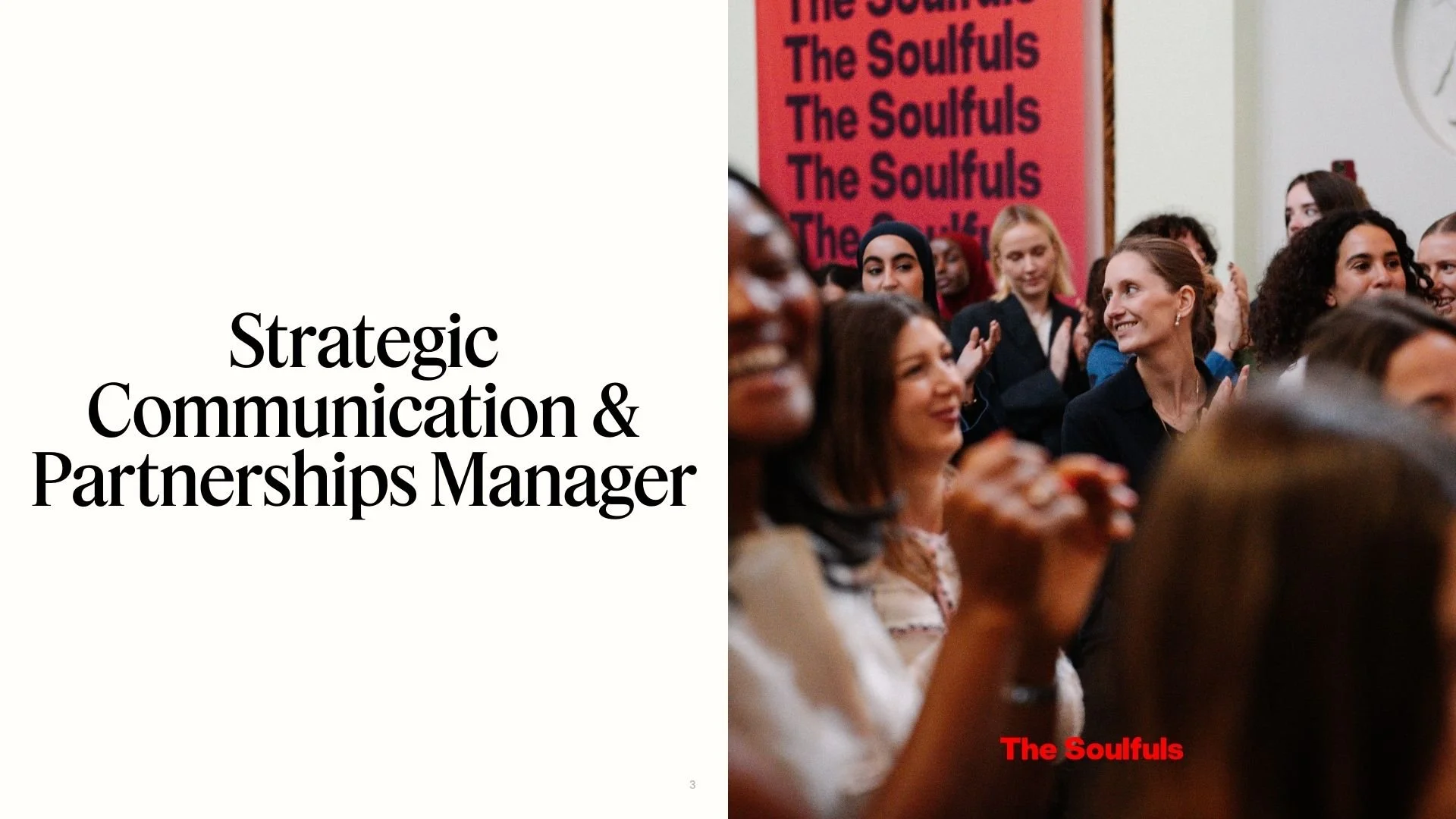We are looking for a Strategic Communication & Partnerships Manager to help carry and strengthen The Soulfuls as we enter our next phase of growth. It is a hands-on, analytical, and collaborative role focused on strategic communication, turning impact and insights into clear narratives, and partnership enablement.